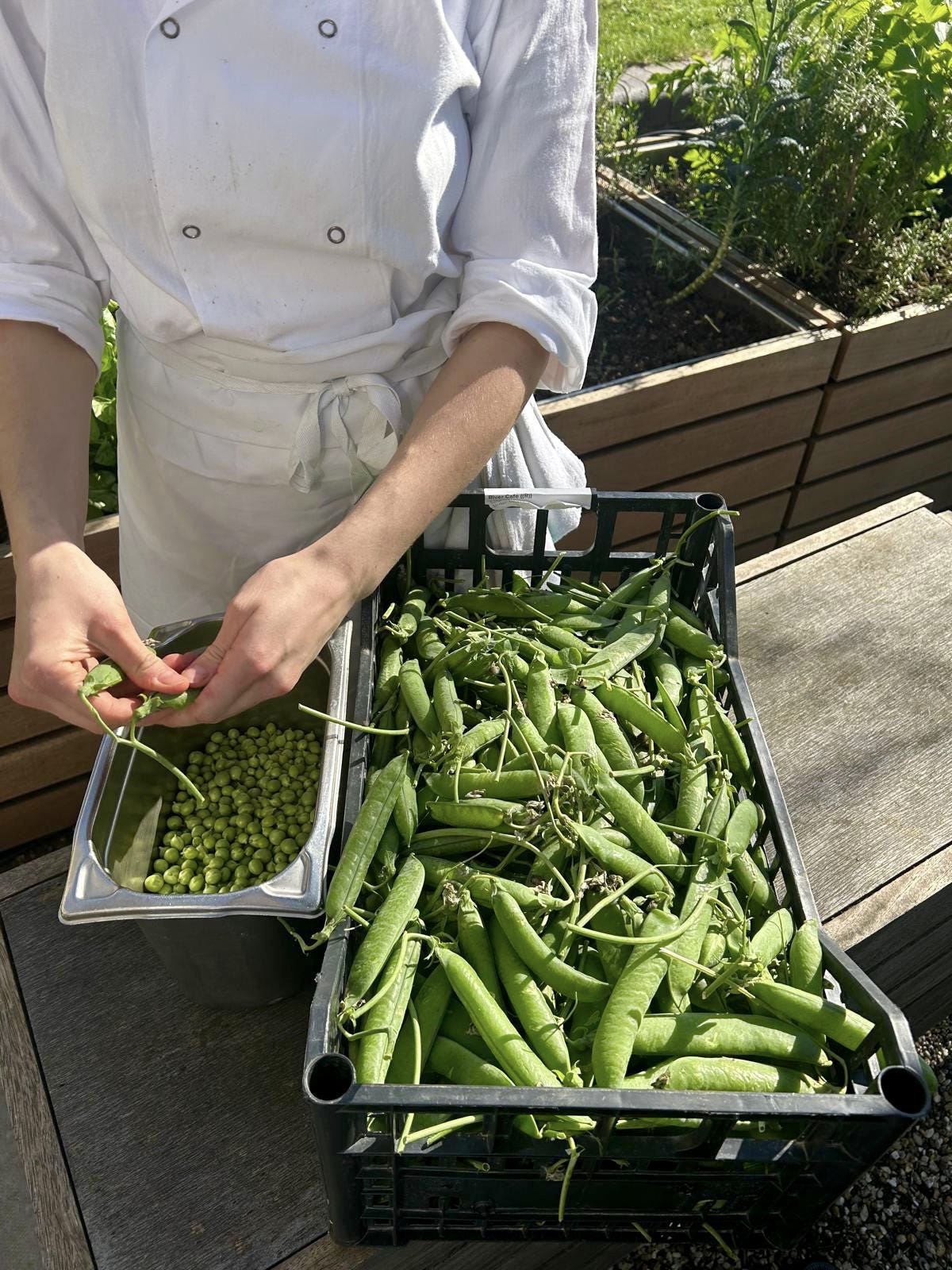 .75kg (about 1.5lbs) each peas and young broad beans in their pods